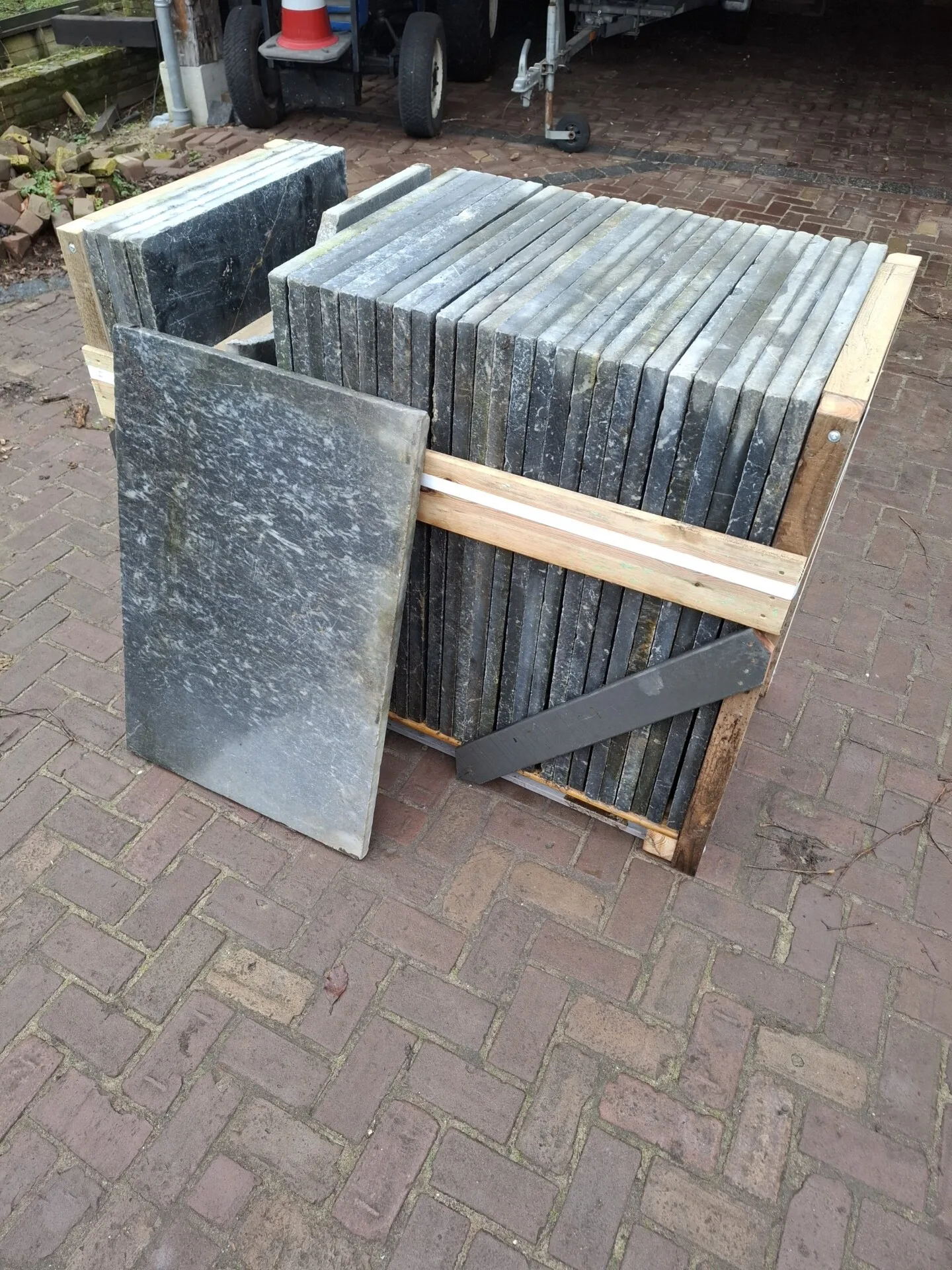 16,74m² 60x90x3cm antique blue hardsteen, gebruikt