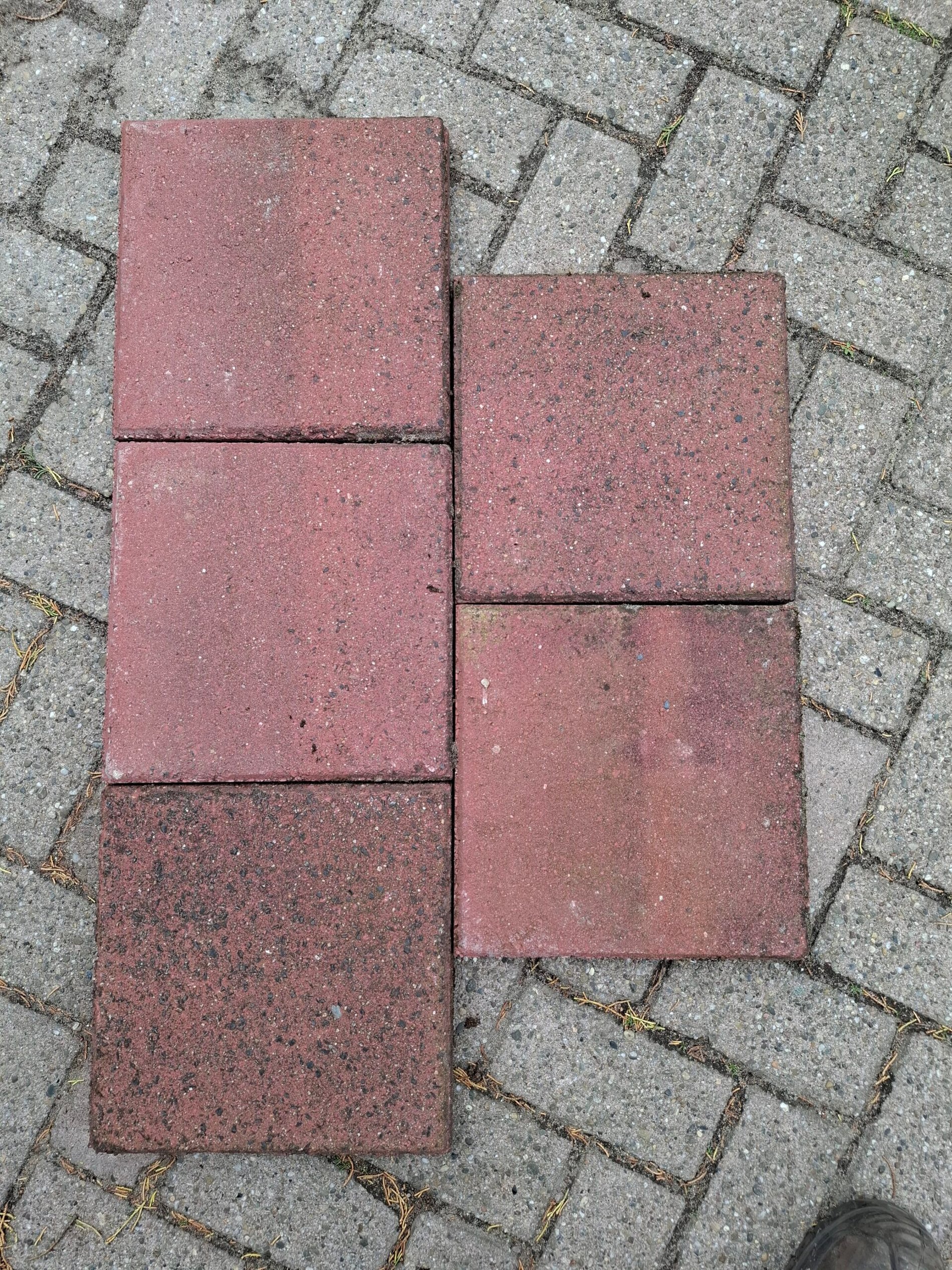 32m² 30×30 tegel rood, gebruikt, op pallet