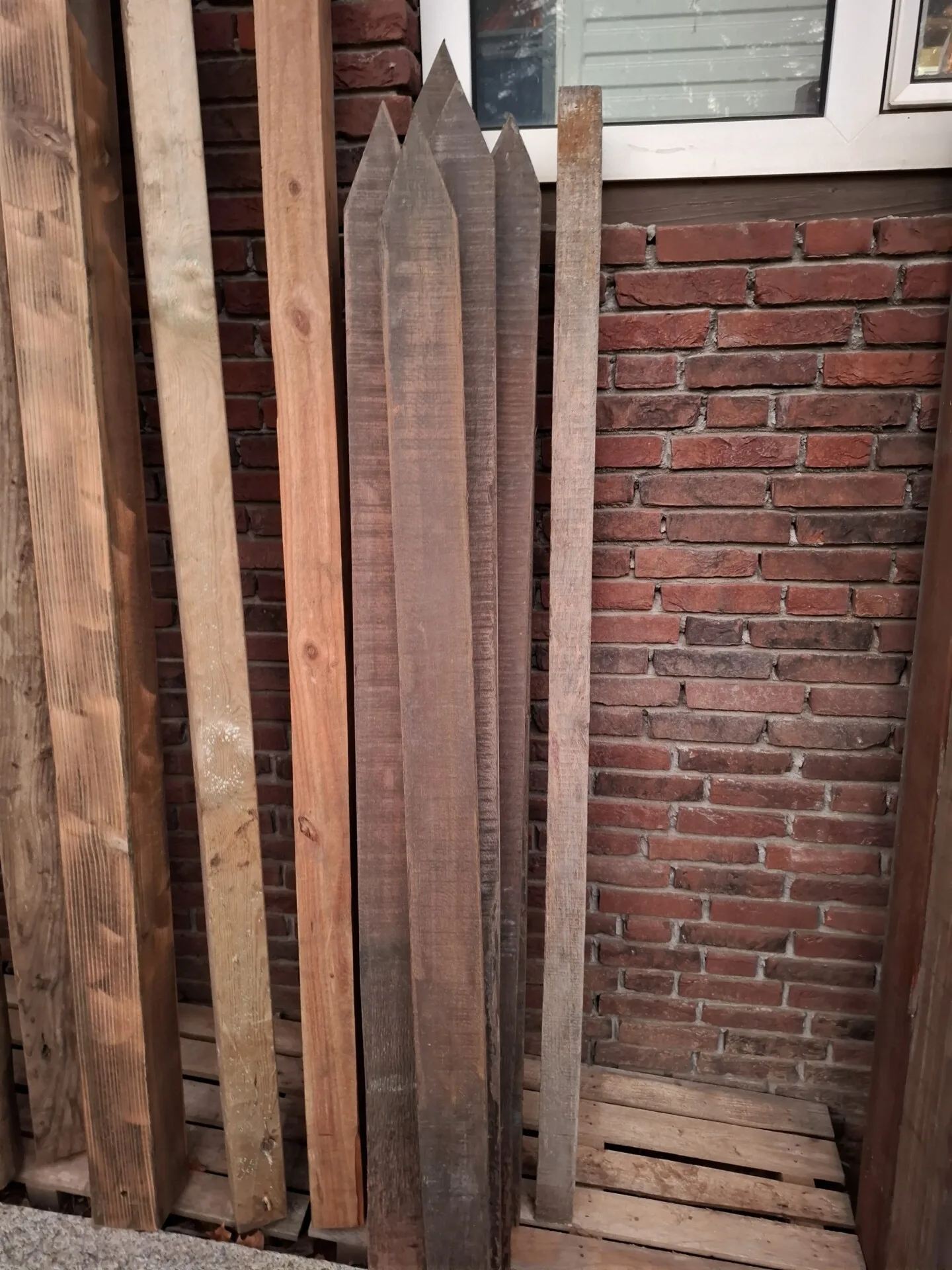 610 stuks 8x10x190 hardhouten paal, gebruikt