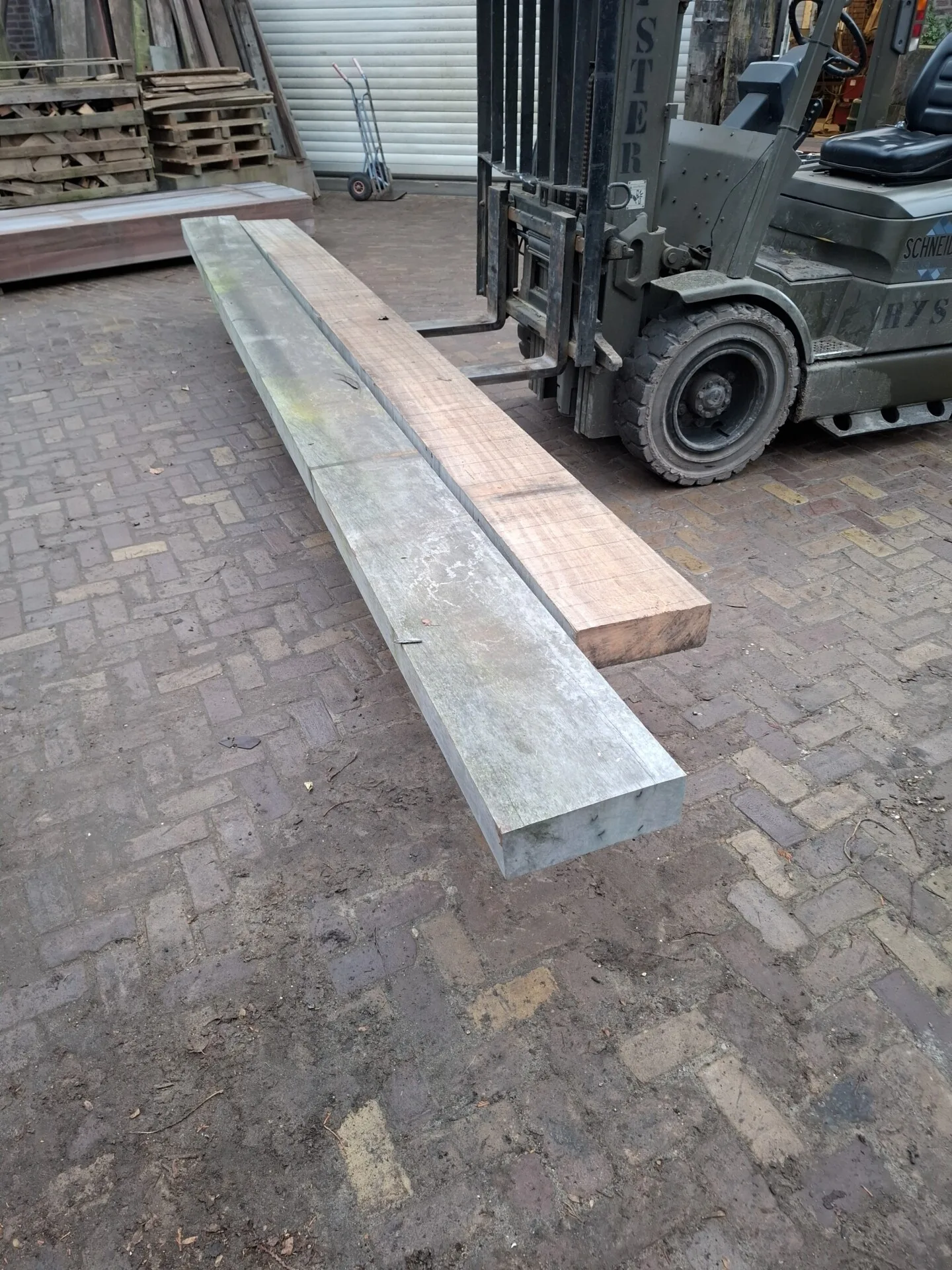 2 stuks Hardhouten balken 10x30cm 500&450cm, nieuw